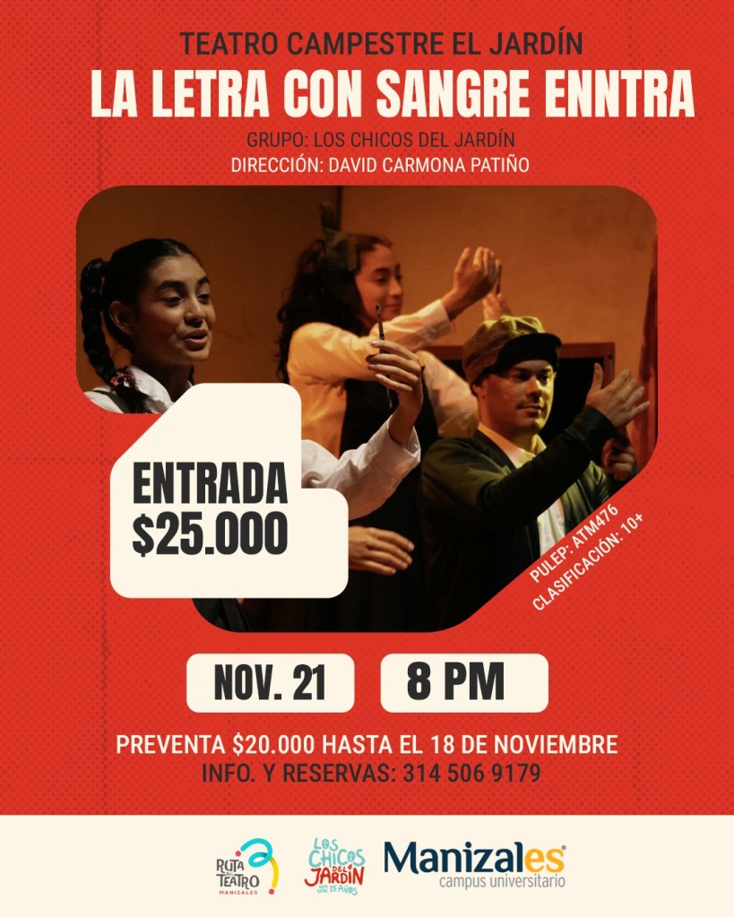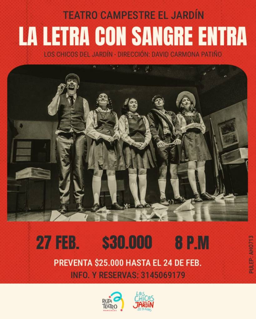 - Es un espacio que conecta a los teatreros que han hecho parte de la historia del departamento de Caldas con las nuevas generaciones de artistas escénicos. A través del encuentro y el intercambio, se reconoce su trayectoria, se valora su legado y se construyen nuevos caminos desde el arte, la memoria y la experiencia compartida. Para el año 2025 este proyecto ganó la beca de investigación en artes en el marco del programa nacional de estímulos del ministerio de las culturas, las artes y los saberes.